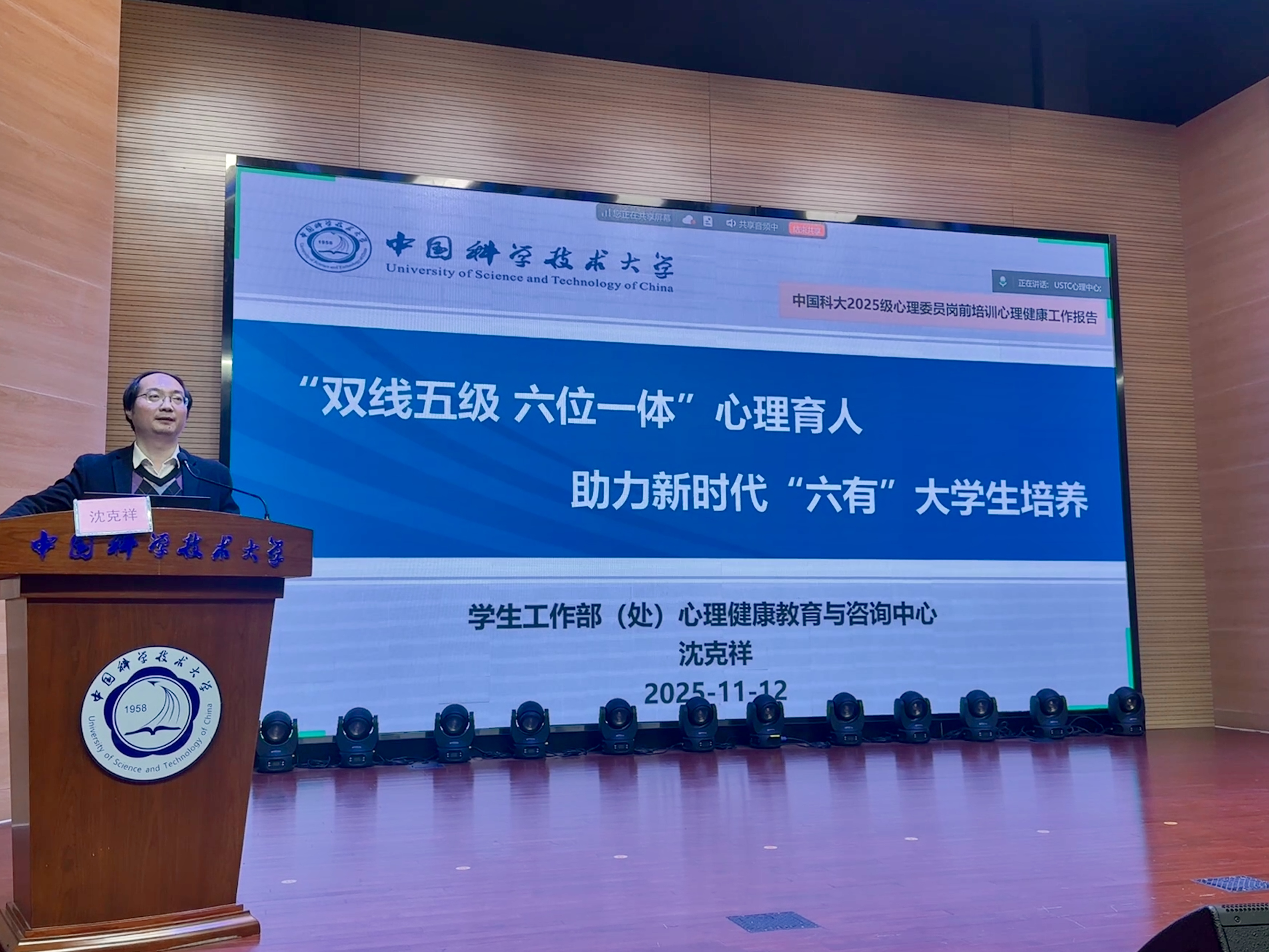 开班仪式上,沈克祥宣读《关于表彰2024-2025学年优秀心理委员的决定》;心理健康教育与咨询中心专职教师崔静琳介绍心理委员培训学习安排;物理学院2025级本科5班欧阳盛彬代表新生心理委员发言;2025年全国百名心理委员风采展入选者、少年班学院2023级2班杨硕分享心理委员工作经验。