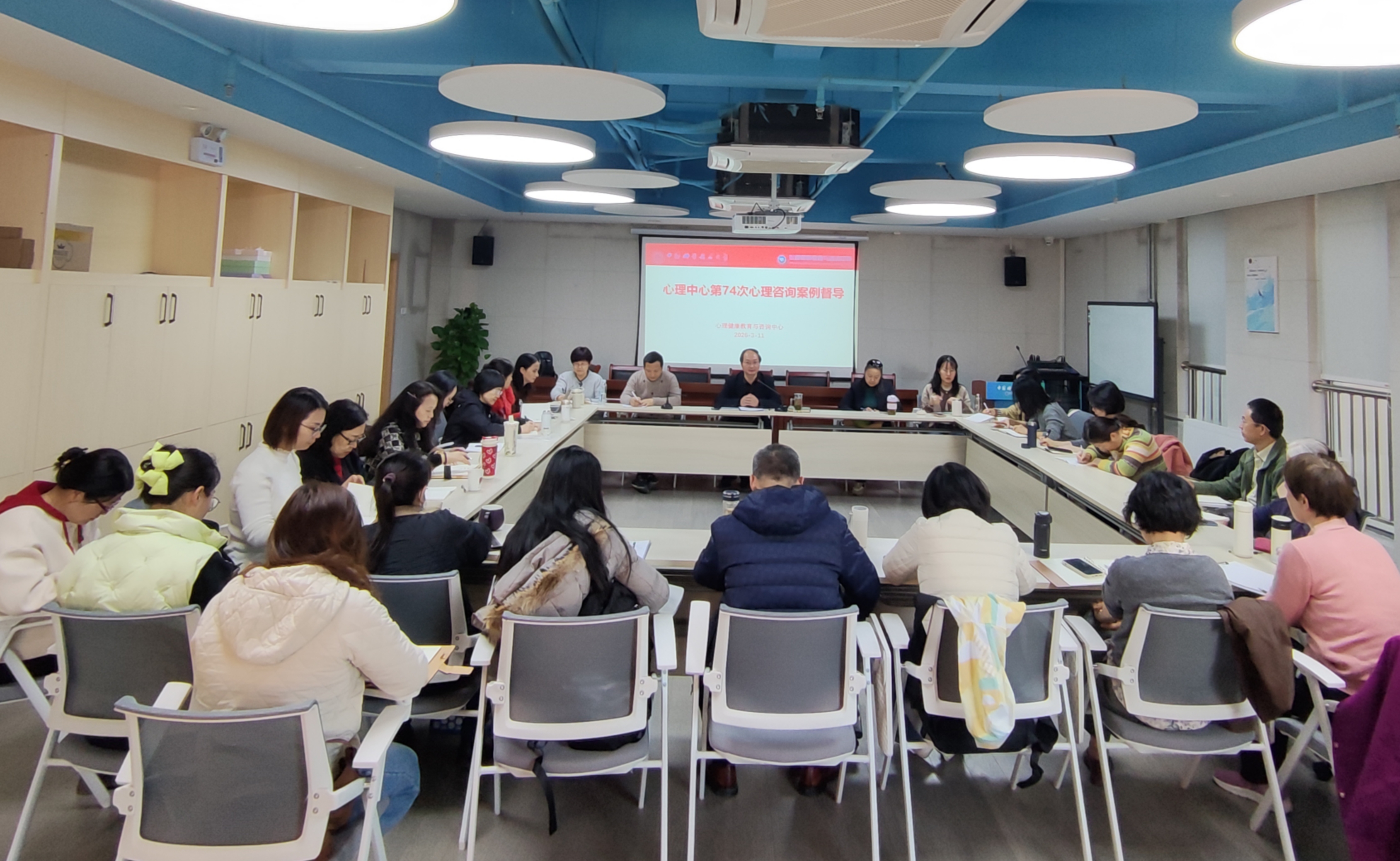 为持续提升心理健康教育服务质量与咨询师队伍专业素养,2026年3月11日上午,心理健康教育与咨询中心新学期工作会议暨第74次心理咨询案例督导在中心二楼团体辅导室进行,心理中心全体专兼职咨询师参加了本次督导,党委学生工作部副部长、心理健康教育与咨询中心主任沈克祥主持会议。
